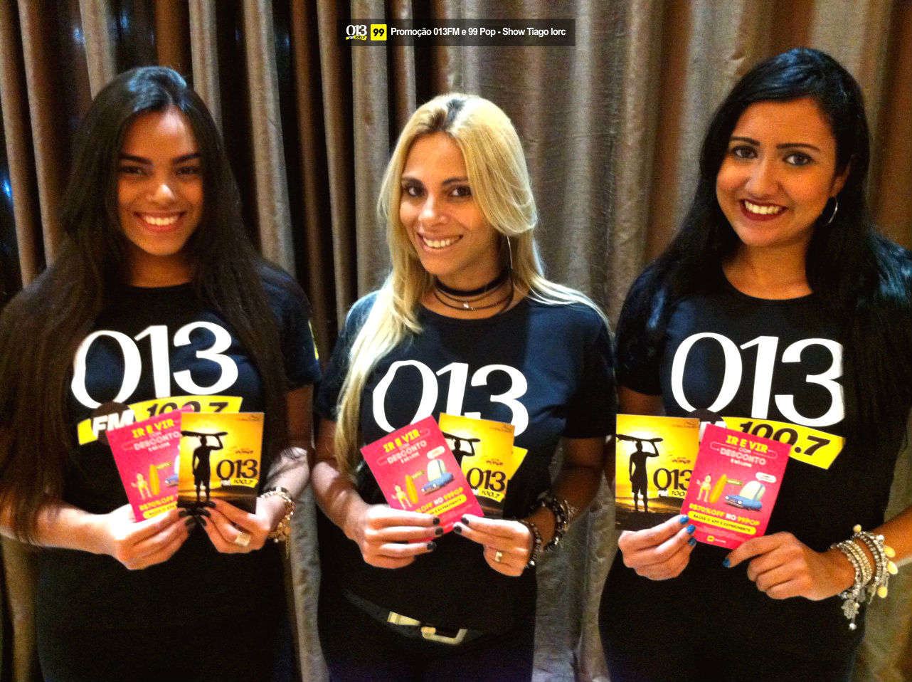 Voltar Promoção 013FM/99Pop Tiago IorcFVL e a Promoção 013FM/99Pop Tiago Iorc no Mendes Convention Center em Santos, onde foram sorteados 03 (três) pares de convites para os ouvintes.