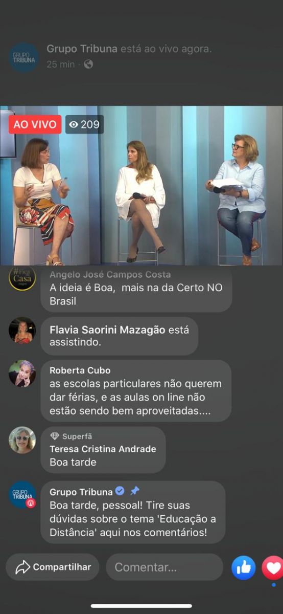 Voltar FVL em Encontro VirtualFVL segue com encontro virtual com o tema do momento. No comando dos painéis de "A Região em Pauta", com o tema Educação à Distância, a jornalista Arminda Augusto, editora-chefe de A Tribuna, conversou com especialistas da área, estudiosos em Tecnologia da Informação aplicada à Educação e autoridades públicas. O debate aconteceu no dia 27 de abril em live no Facebook do Grupo Tribuna.