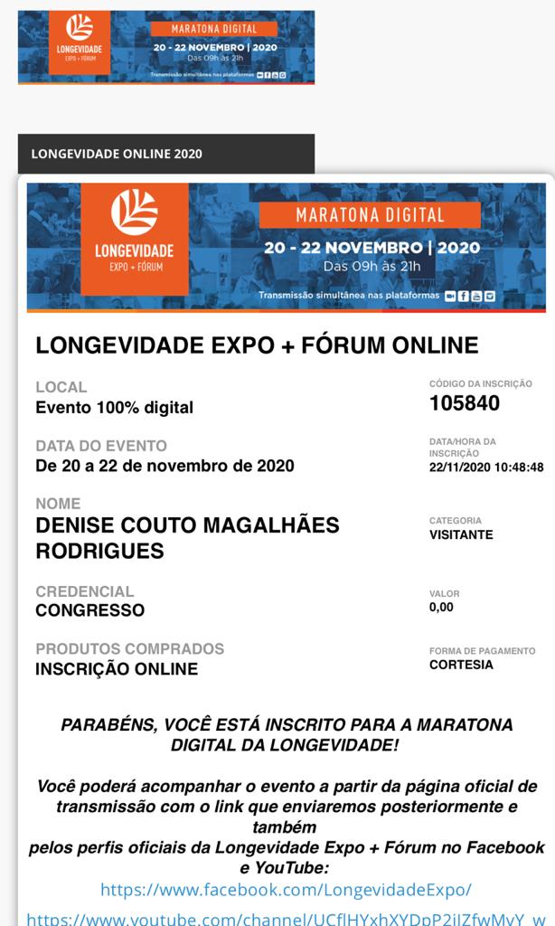 A Longevidade Expo+Fórum voltou e em 2020 foi realizada no fomato virtual, atendendo, assim, o novo normal pós-Covid. Com mais de 27 (vinte e sete) horas de programação e transmissão ao vivo nos canais da Longevidade no Yotube e Facebook através da plataforma Zoom.