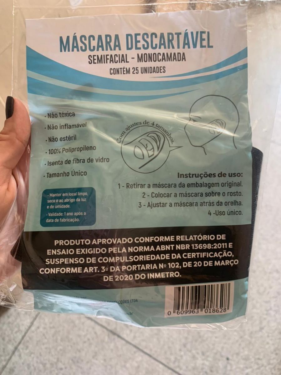 As máscaras são descartáveis com 1 (uma) camada de tnt/monocamada (tecido impermeável), tendo 4 (quatro) ajustes de tamanho, sendo ideal a troca a cada 3 (três) horas.
