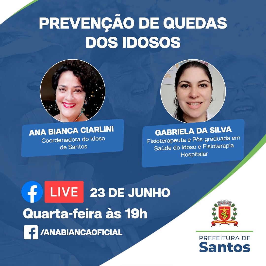 Voltar FVL participa como ouvinte de LiveFVL participa como ouvinte de Live no Facebook: anabiancaoficial, como também, no Instagram: @anabiancaciarlini, sobre Prevenção de Quedas dos Idosos com Ana Bianca Ciarlini - Coordenadora de Políticas da Pessoa Idosa na Secretaria de Desenvolvimento Social na Prefeitura Municipal de Santos e Gabriela da Silva - Fisioterapeuta e Pós-Graduada em Saúde do Idoso e Fisioterapia Hospitalar