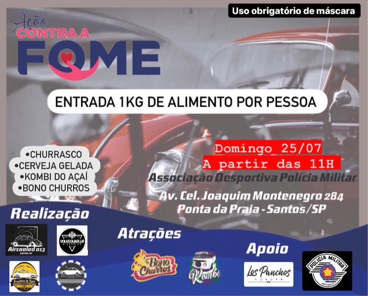 A ação que foi realizada no ADPM - 6° Batalhão, localizado na Avenida Coronel Joaquim Montenegro n° 284 - Ponta da Praia - Santos (SP) com a exposição de carros antigos e foi pedido 1 (um) quilo de alimento não perecível para acesso ao evento. Para os que quiseram fazer somente a doação sem a necessidade de sair do carro, foi feito o sistema drive thru.