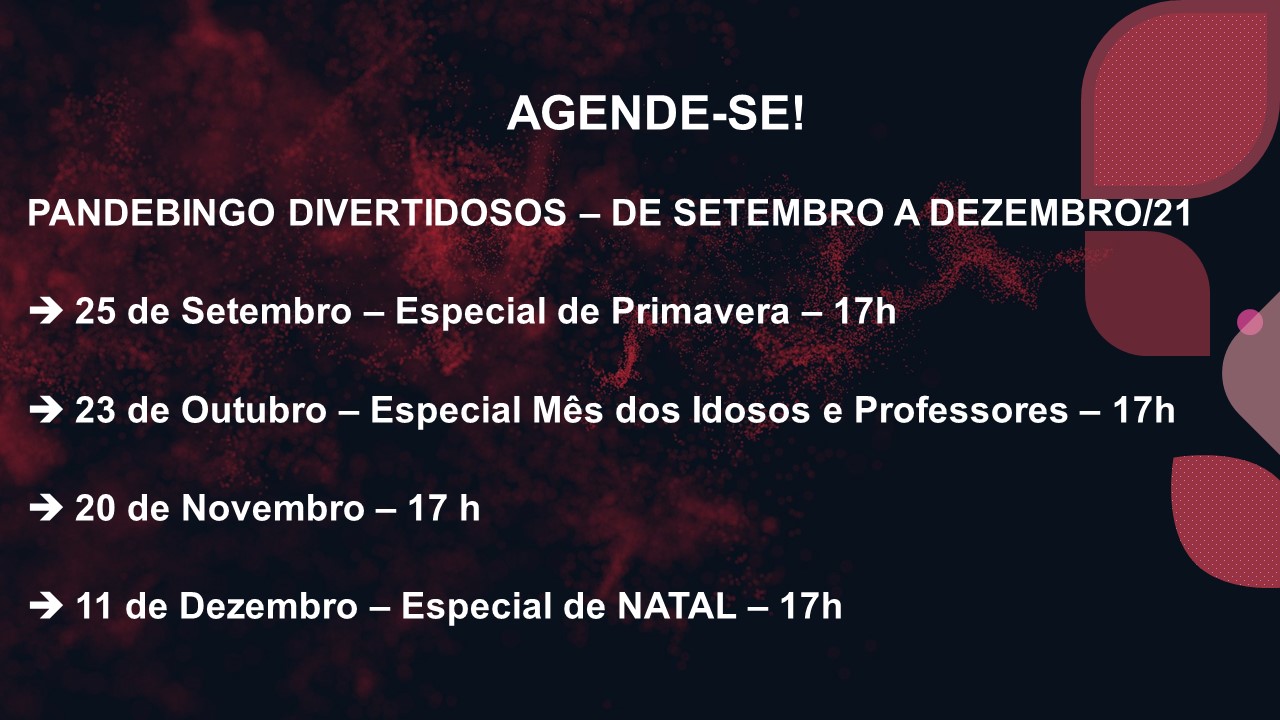 Voltar Pandebingos agora serão mensaisA partir deste mês de setembro o Pandebingo será mensal.