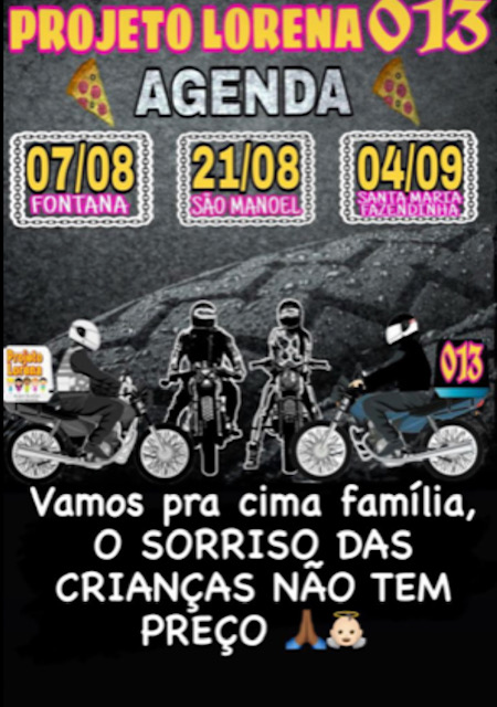 Voltar FVL no apoio do Projeto LorenaA FVL apoiou uma turma de super entregadores, todos motoboys, que distribuem pizzas e outras doações de roupas, calçados, brinquedos e cestas básicas para crianças de várias comunidades.