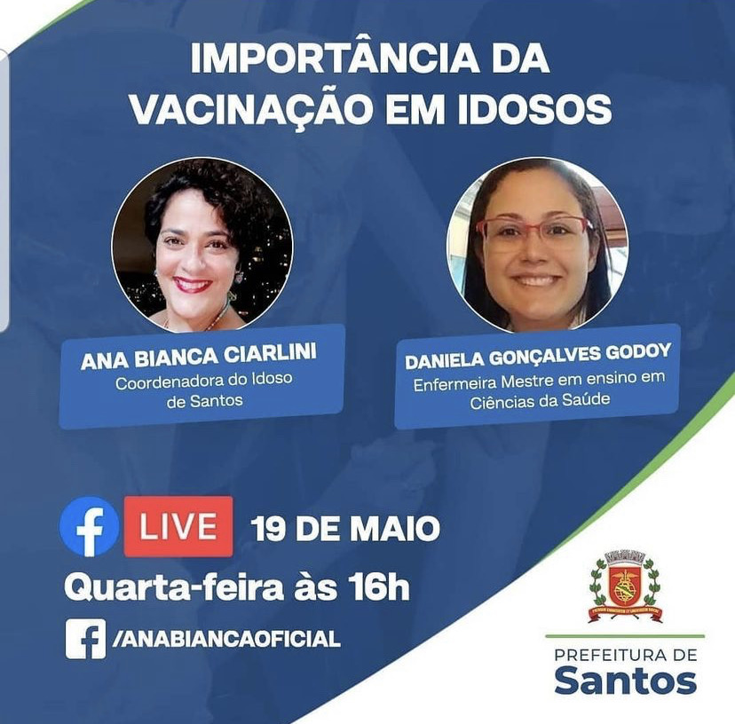 Voltar FVL participou como ouvinte de encontro virtualAinda em época de pandemia e seguindo todos os protocolos vigentes, a FVL, segue participando (como ouvinte) de várias Lives e nesta o tema foi¨: "Importância da Vacinação em Idosos" com Ana Bianca Ciarlini - Especialista em Longevidade e Coordenadora do idoso de Santos e Daniela Gonçalves Godoy - Enfermeita Mestre em ensino em Ciências da Saúde.