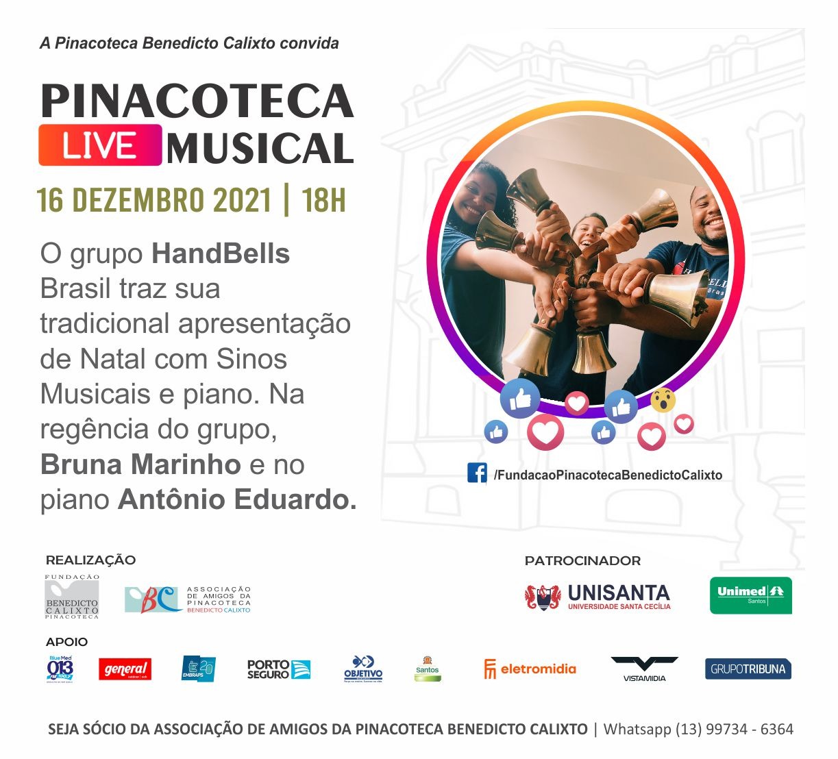 Desta vez com o grupo HandBells Brasil que apresentou Natal com Sinos Musicais e piano. Na regência do grupo Bruna Marinho e no piano Antônio Eduardo.