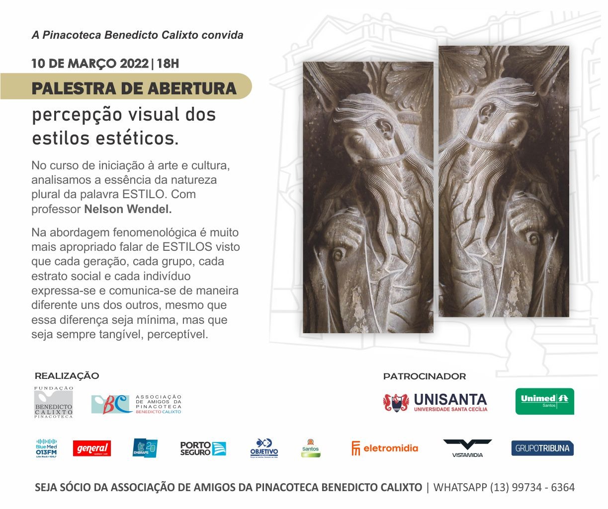 Voltar FVL apoiou palestra realizada na PinacotecaA Fundação Victório Lanza apoiou, divulgou e convidou para a Palestra de Abertura "Percepção Visual dos Estilos Estéticos", em 10 de março/22, às 18h00m, na Pinacoteca de Santos.