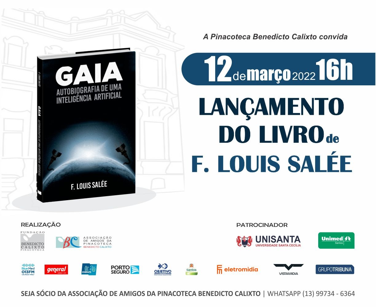 Voltar FVL apoiou lançamento de livroA Fundação Victório Lanza apoiou, divulgou e convidou para o lançamento do livro GAIA - autobiografia de uma inteligência artificial, de F. Louis Salée que aconteceu em 12 de março/22, às 16h na Pinacoteca Benedicto Calixto.