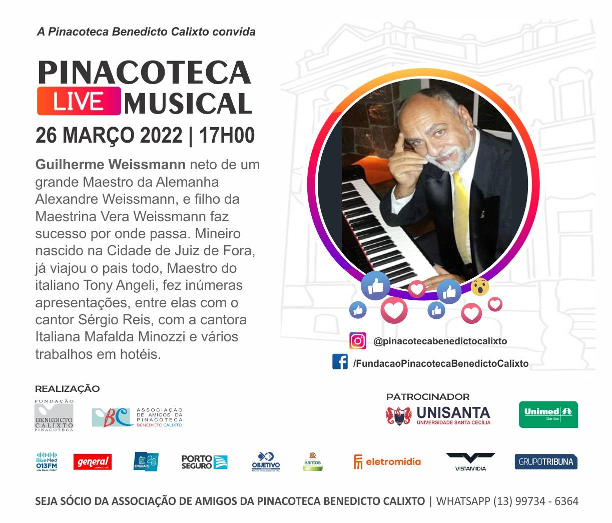 Voltar FVL apoiou Live musical da PinacotecaA Fundação Victório Lanza apoiou a Live musical realizada na Pinacoteca de Santos, transmitida pelo Facebook: /FundacaoPinacotecaBenedictoCalixto e, também, pelo Instagram: @pinacotecabenedictocalixto.