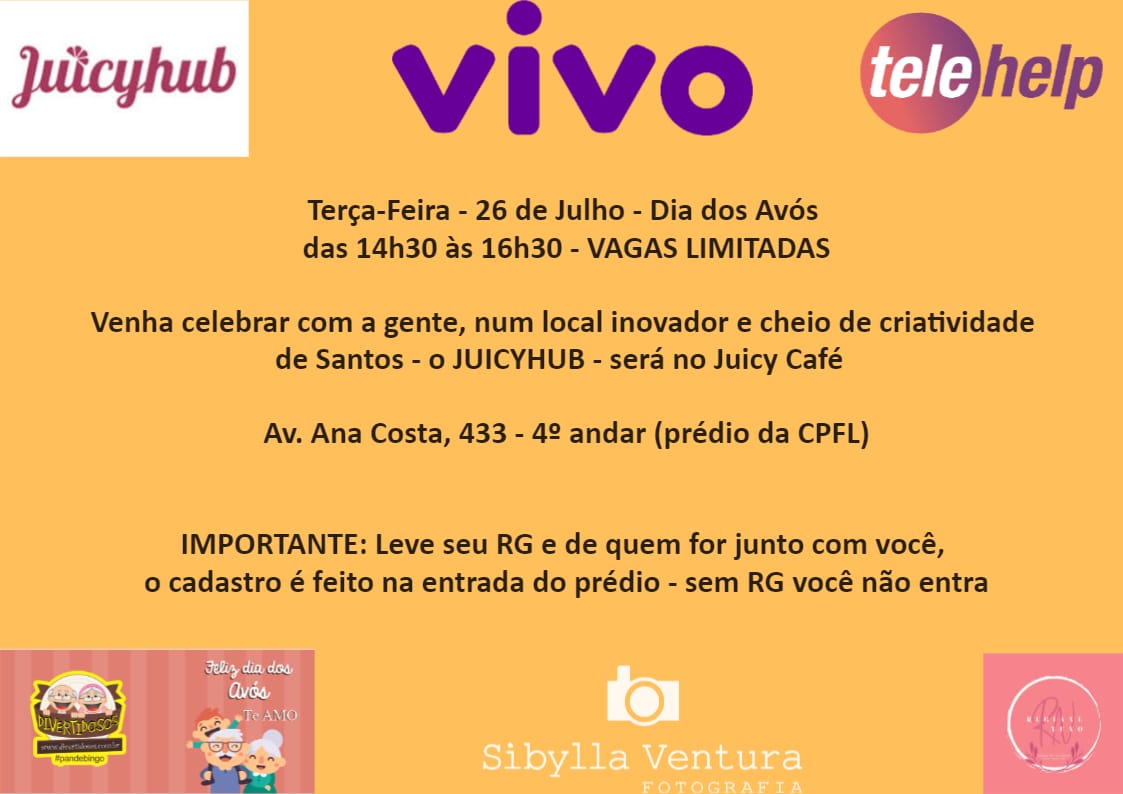 Foram reunidos diversos parceiros, entre eles: Vivo, Telehelp, Sibylla Ventura e Mary Kay em um espaço co-working inovador e criativo de Santos - o Juicyhub.