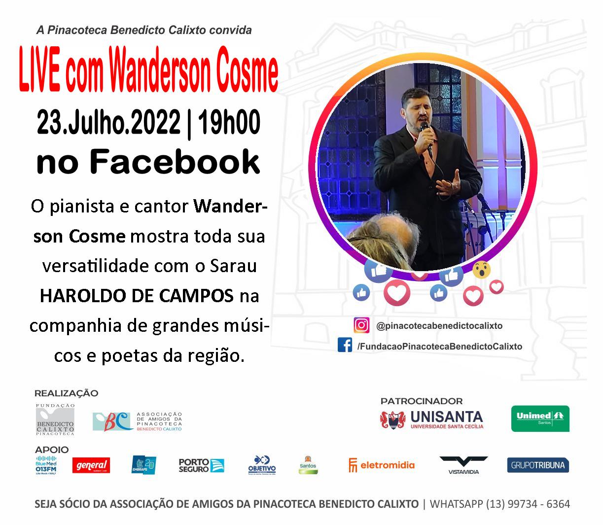 Voltar FVL apoiou Live musical da PinacotecaA Fundação Victório Lanza apoiou, em 23 de julho de 2022, a Live Musical com o pianista e cantor Wanderson Cosme.