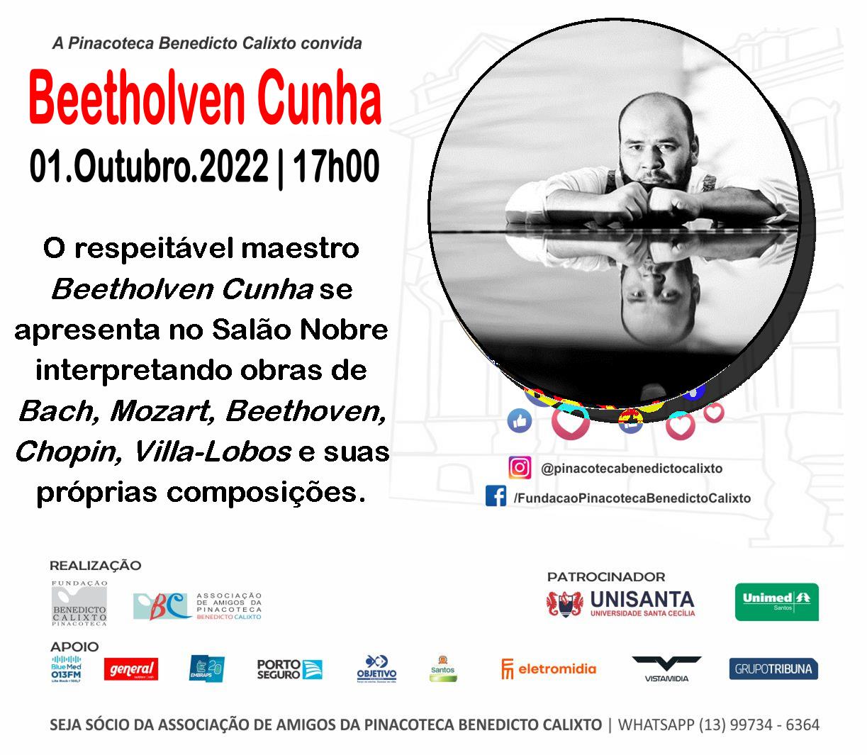 Voltar FVL no apoio de apresentação na PinacotecaA Fundação Victório Lanza apoiou, divulgou e convidou para a apresentação do respeitável maestro Beethoven Cunha no Salão Nobre da Pinacoteca Benedicto Calixto em Santos (SP).