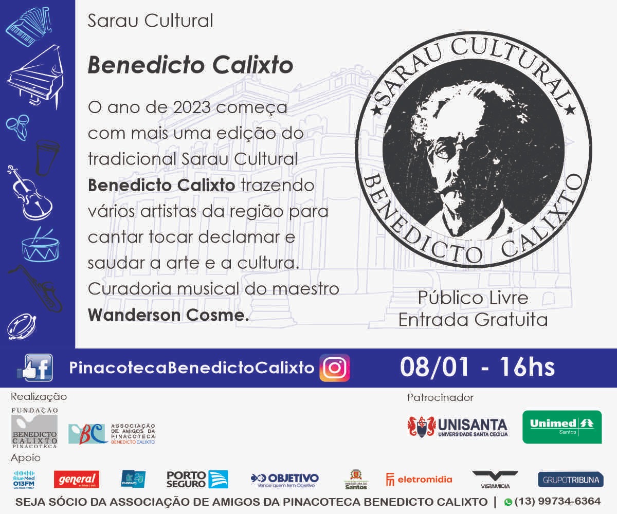 O ano de 2023 começou com mais uma edição do tradicional Sarau Cultural Benedicto Calixto trazendo vários artistas da região para cantar, tocar, delcamar e saudar a arte e a cultura.