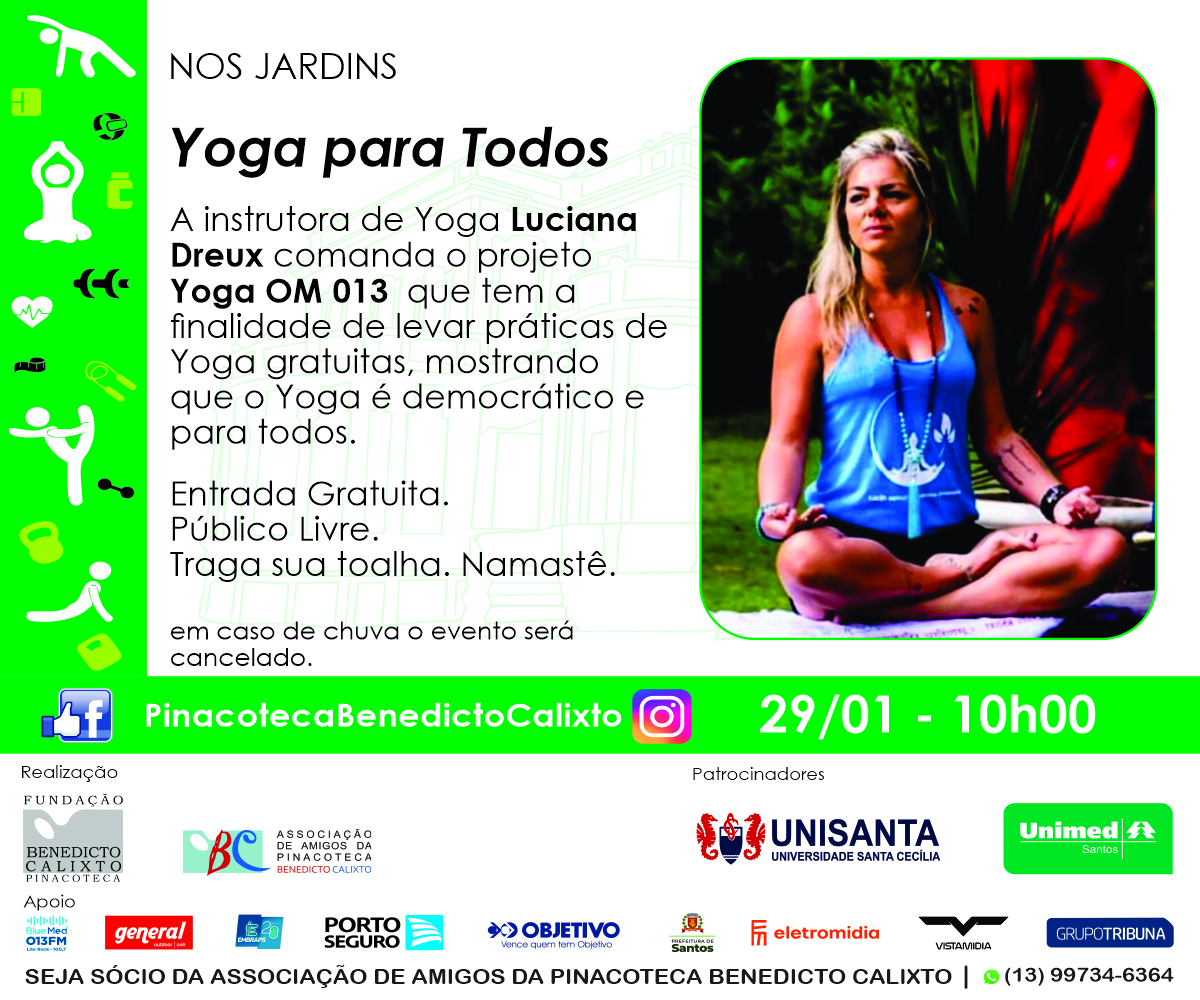 Voltar FVL apoiou Yoga para todosA Fundação Victório Lanza apoiou e divulgou, em 29.01.2023, às 10h00m, YOGA PARA TODOS, nos jardins da Pinacoteca de Santos.