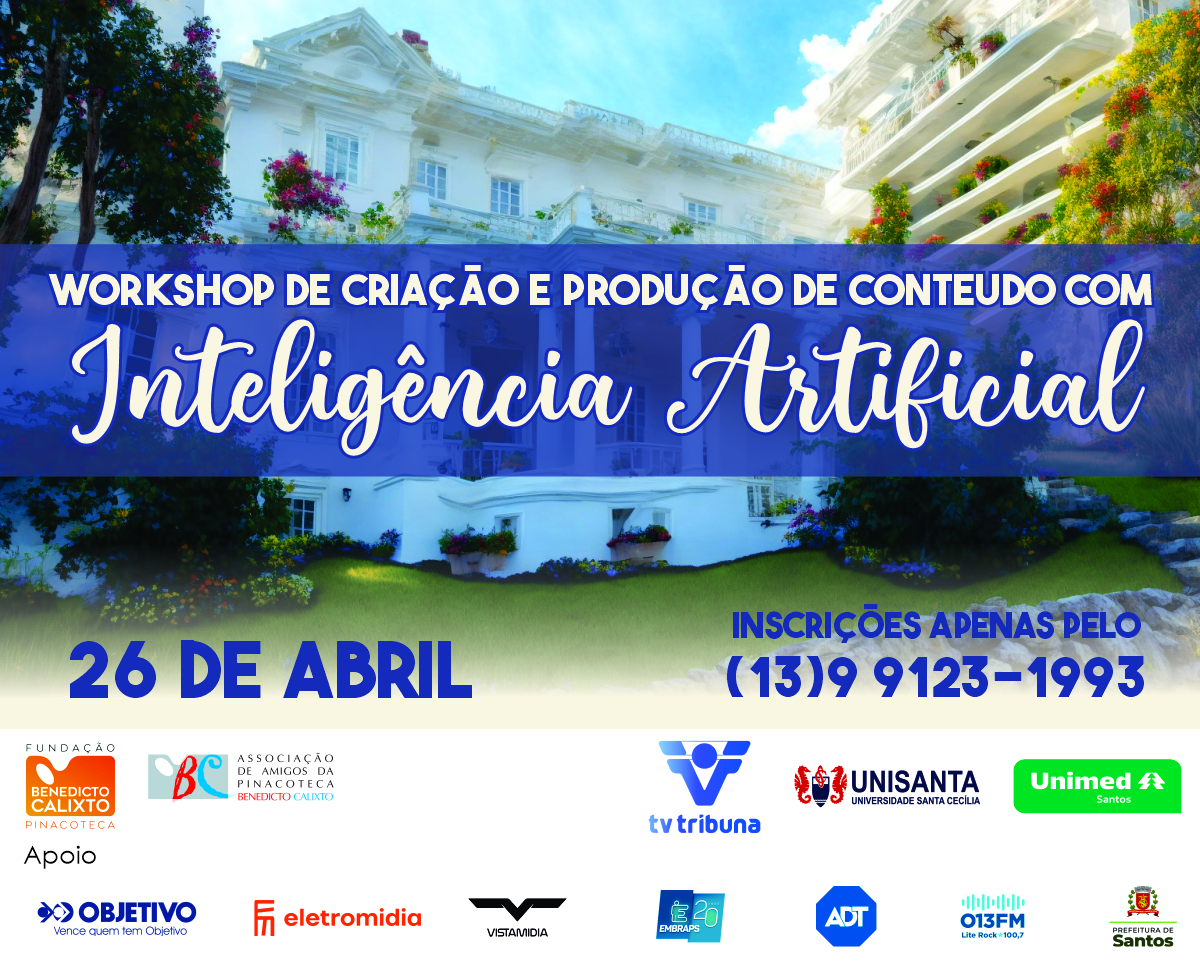 Voltar FVL no apoio de workshop na PinacotecaA Fundação Victório Lanza apoiou e divulgou Workshop de Criação e Produção de Conteúdo com Inteligência Artificial, que aconteceu na quarta-Feira - 26 de abril de 2023, às 18h30m.